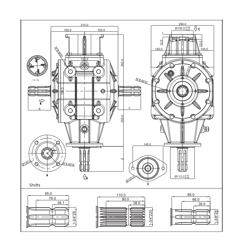 KLF-GC290-B nudi različite omjere prijenosa, prilagodljivi širokom rasponu različitih vrsta opreme za poljoprivredne strojeve, uključujući slame drobilice i strojeve za recikliranje poljoprivrednih filmova. Gleason Bevel zupčanici proizvedeni su s visokom preciznošću, osiguravajući visoku točnost mrežice, minimalni gubitak prijenosa i visoku učinkovitost u prijenosu energije. Proizvod je dizajniran s jednosmjernim mehanizmom kvačila. Tijekom rada, kada se osovina rezača radi velikom brzinom, ako traktor naglo zaustavi ulaz napajanja, inercija rezača može biti prevelika. Jednosmjerna kvačila učinkovito štiti zupčanike i osovinu od oštećenja zbog ovog iznenadnog zaustavljanja.